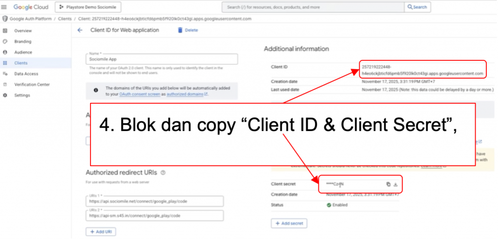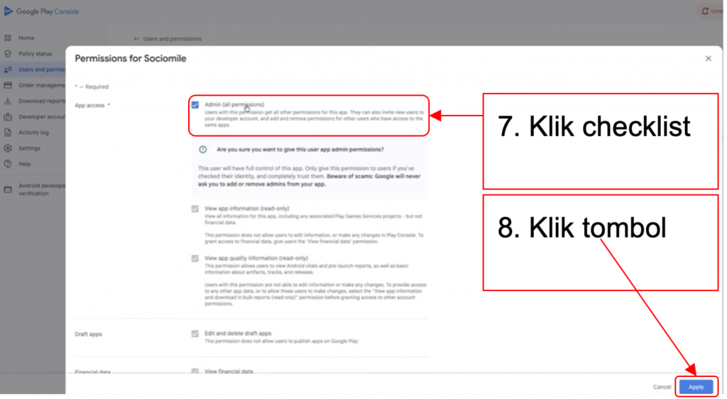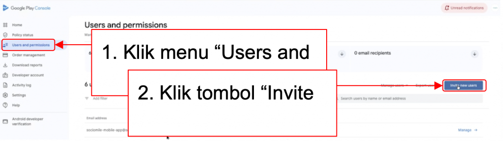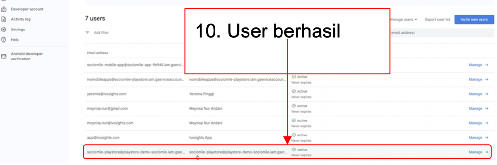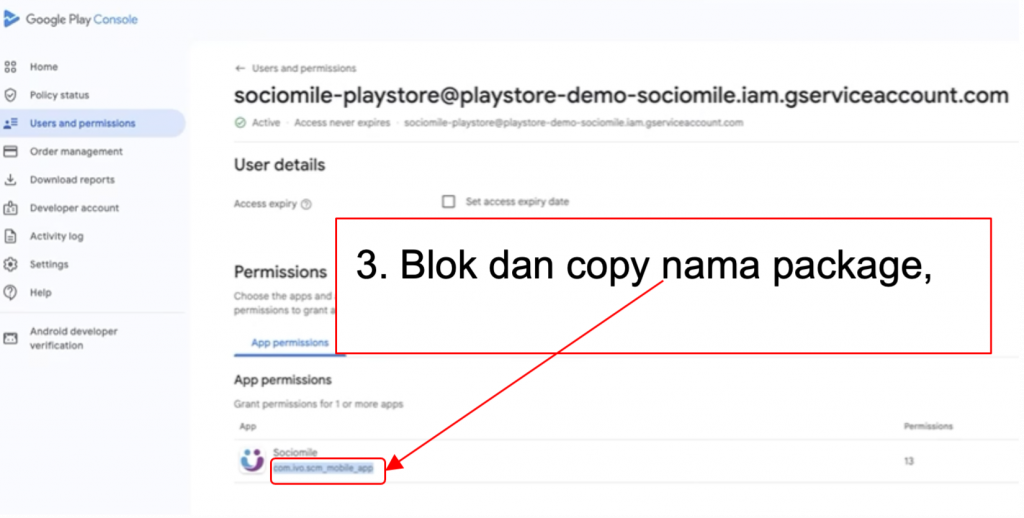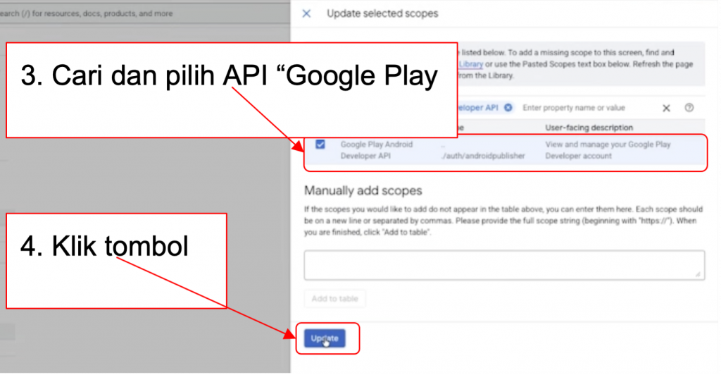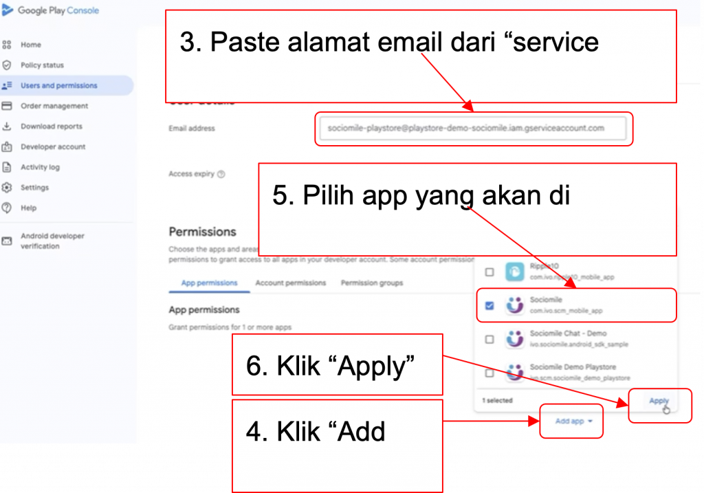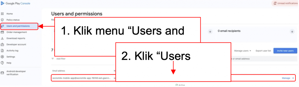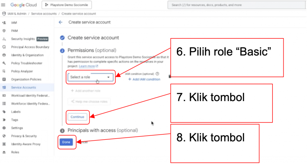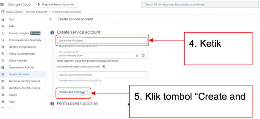 - Menambahkan User & Permissions dari email service account APIs & Service Google Cloud Console
