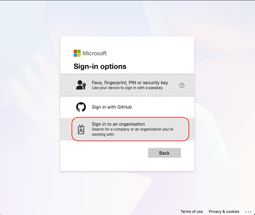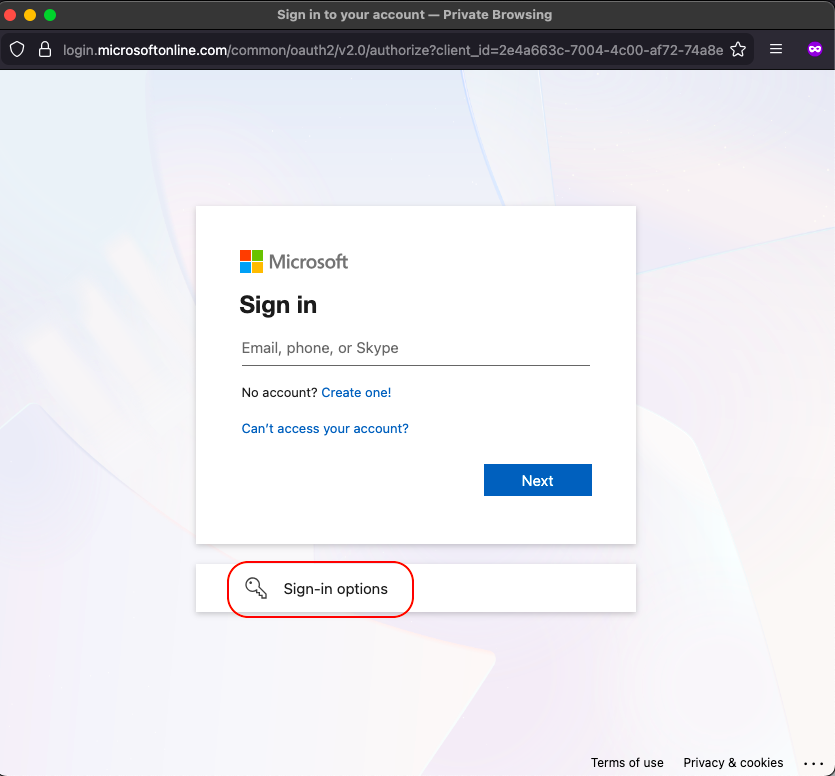- Jika email Exchange yang digunakan merupakan akun Microsoft organisasi (dikelola oleh kantor), klik Sign-in options